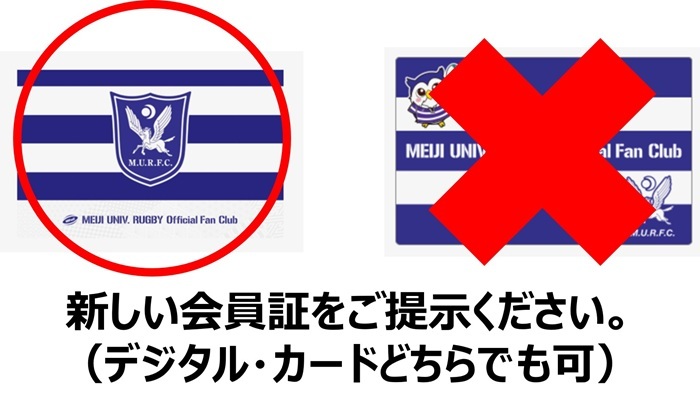 以下デザインの会員証をご用意の上、お越しください。カードの会員証、デジタル会員証(スクリーンショットも可)いずれかをご提示ください。旧デザインの会員証をご提示いただいてもお渡しできません。
