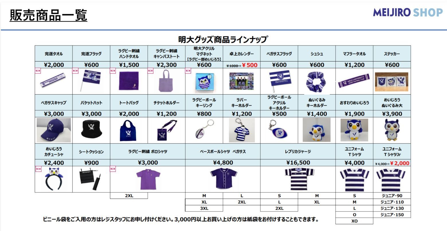 試合当日の会場での明大グッズ販売情報をお届けします!