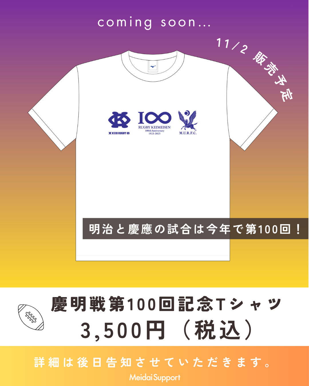 慶應義塾大学との試合は今年で100回目!100回を記念した限定記念Tシャツの販売します!