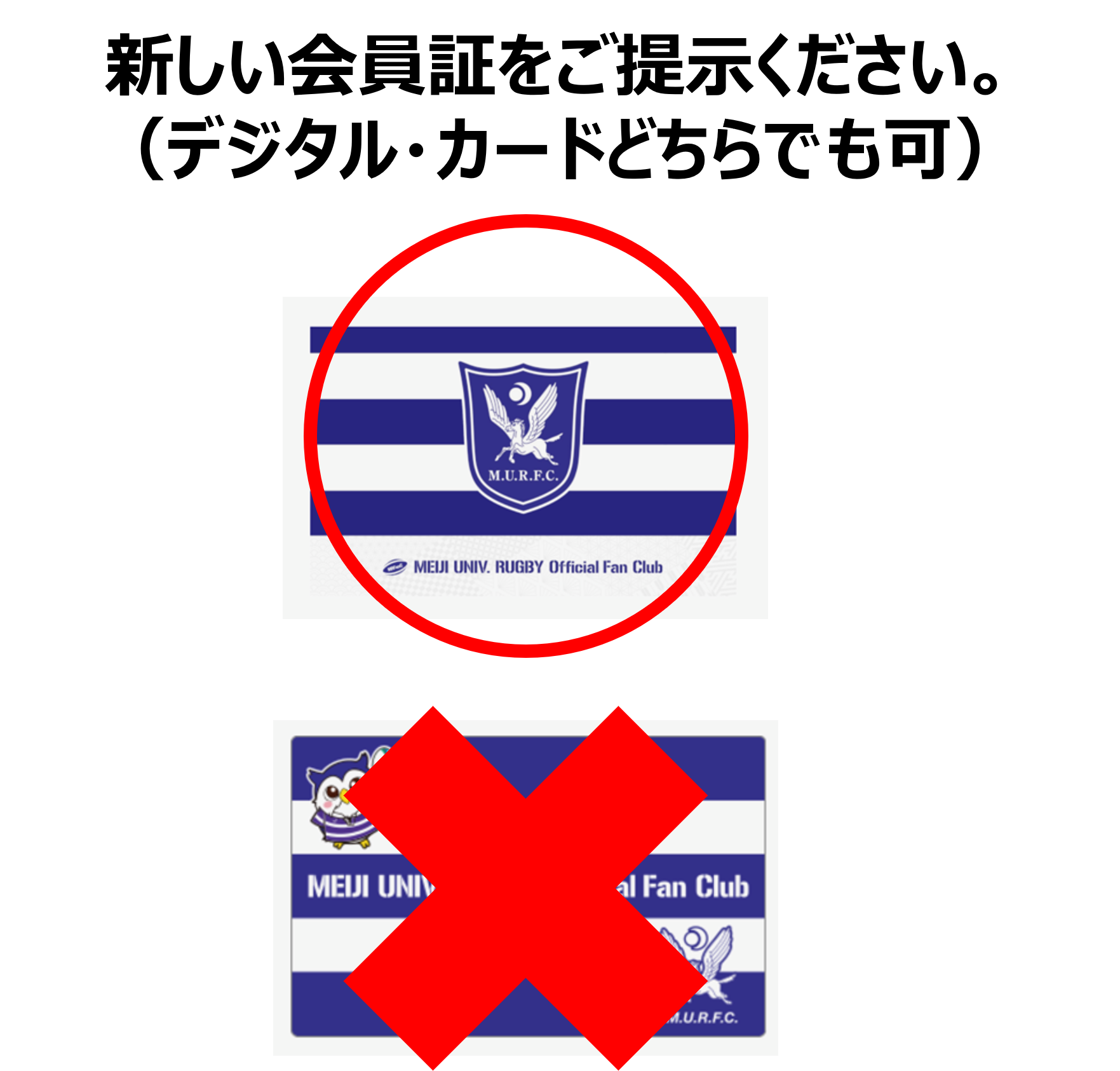 以下デザインの会員証をご用意の上、お越しください。カードの会員証、デジタル会員証(スクリーンショットも可)いずれかをご提示ください。旧デザインの会員証をご提示いただいてもお渡しできません。