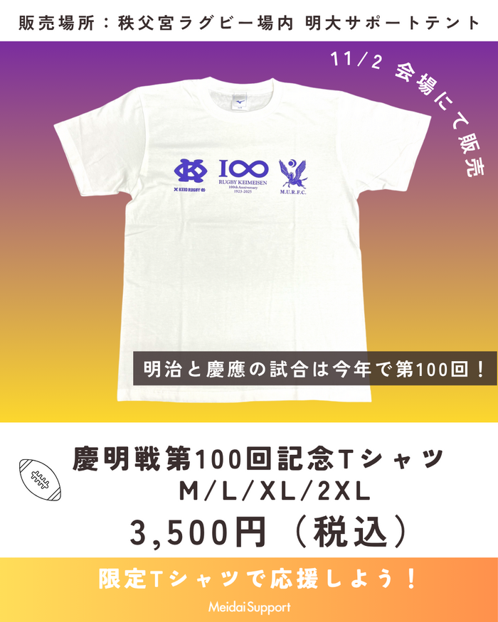 慶應義塾大学との試合は今年で100回目!100回を記念した限定記念Tシャツの販売します!