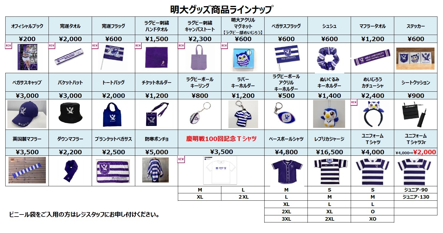 試合当日の会場での明大グッズ販売情報をお届けします!