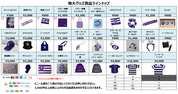 試合当日の会場での明大グッズ販売情報をお届けします!
