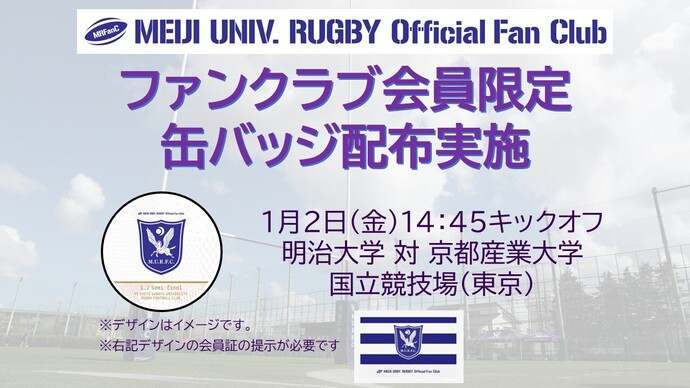 京都産業大学戦では、場外グッズ販売ブースにてご来場いただきました会員様限定に缶バッジを配布いたします!配布開始は12時30分頃を予定しています。ぜひご来場いただき、缶バッジをお受取ください!