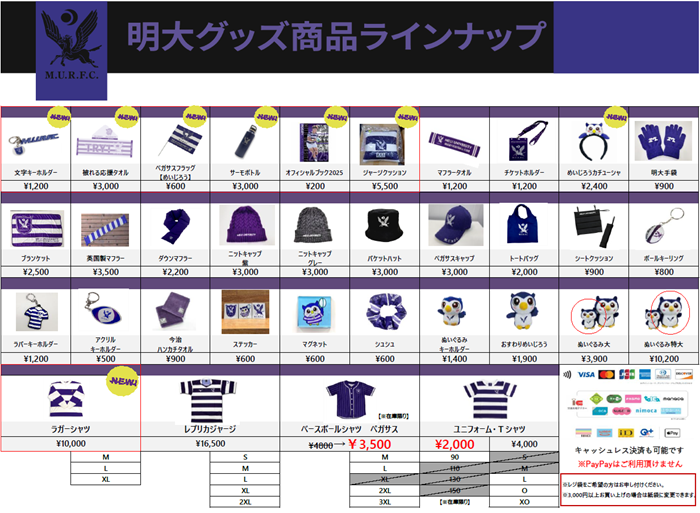 試合当日の会場での明大グッズ販売情報をお届けします!