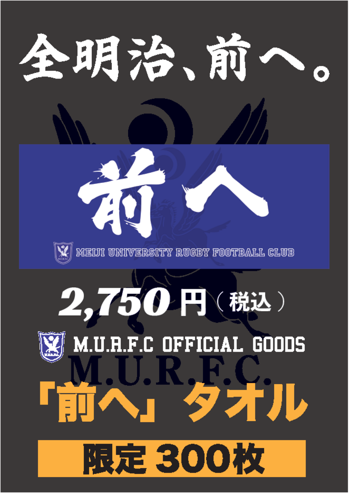 また、300枚限定で「前へ」タオルも販売予定です。ぜひこちらもお買い求めください。