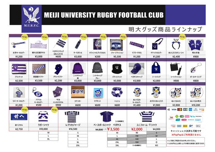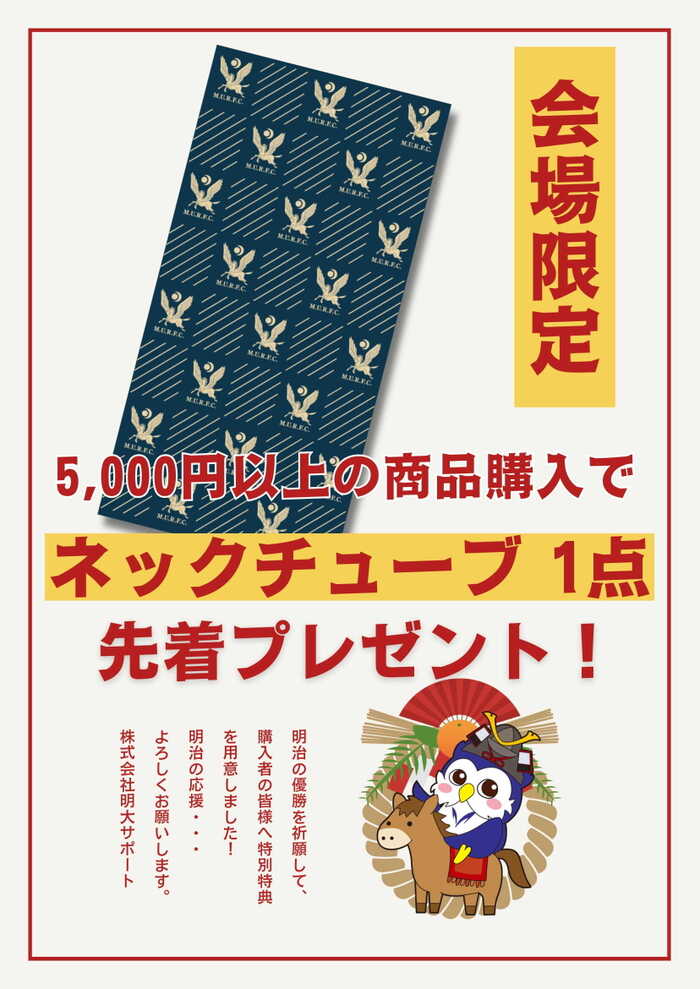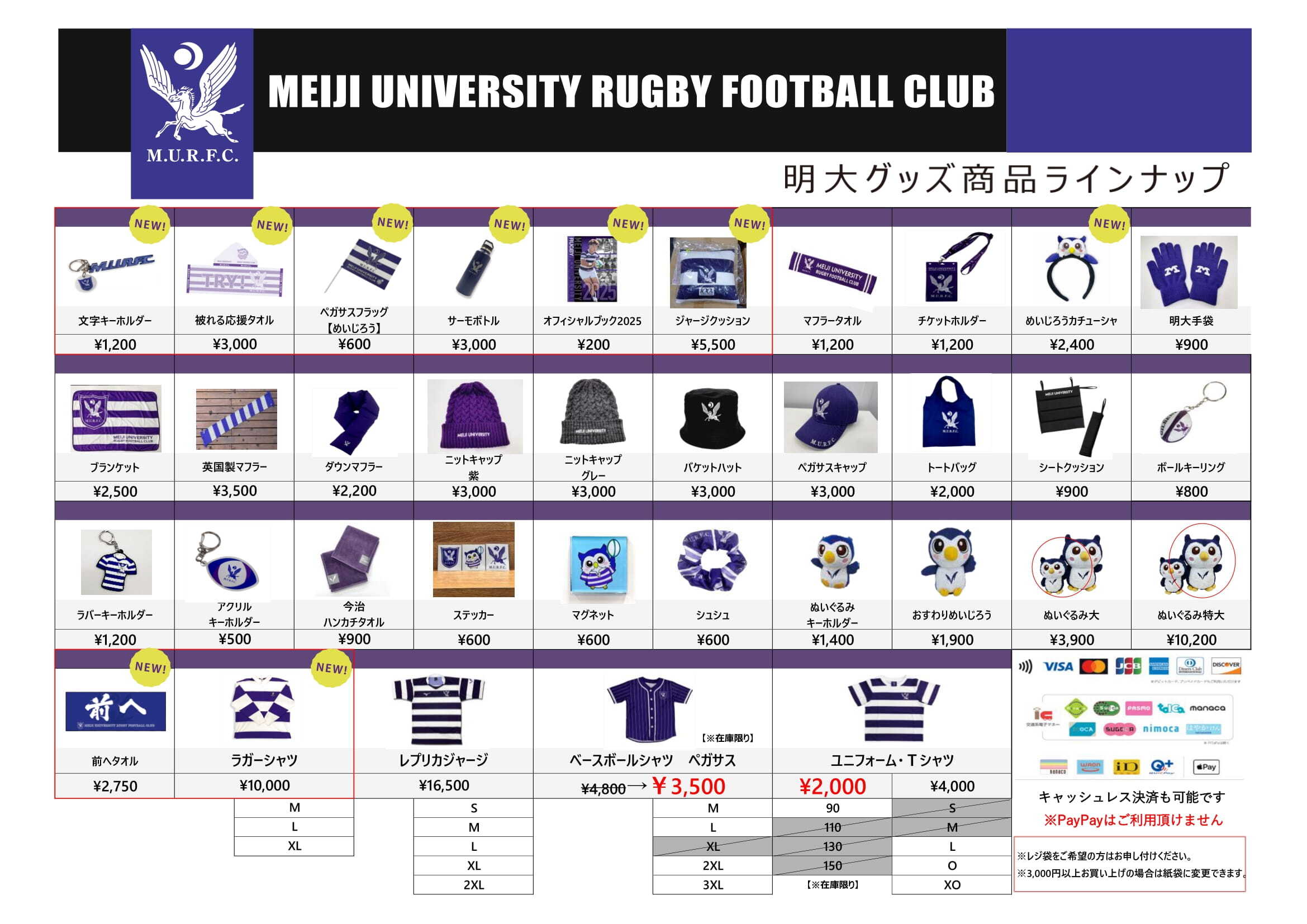 試合当日の会場での明大グッズ販売情報をお届けします。