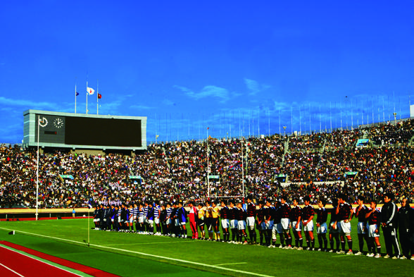 今年で早稲田との定期戦は90回目を迎え、国立競技場での定期戦対戦は1973年から41回目となります。1982年の早稲田との一戦には66,999人が来場し、この数字は現在の国立競技場での有料入場者数第1位を誇ります。